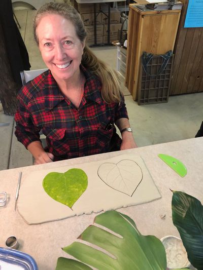 Mountain Pottery rocks! I took a Leaf Dish Workshop on Saturday and had a great time. I made an impression of my leaf in clay, then cut it out and smoothed and sculpted it. It gets baked this week and glazed next week. I'm back in a few weeks to make an address plaque. They also have other classes and workshops. Lots of fun.